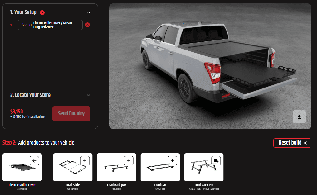 Want to see how your vehicle looks with HSP Accessories? Head to our 3D builder to design your vehicle with HSP products and your factory sports bars. Plus, you can send an enquiry to your local HSP stockist with your complete build set-up!