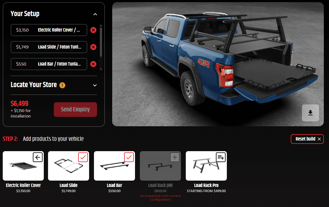 Want to see how your vehicle looks with HSP Accessories? Head to our 3D builder to design your vehicle with HSP products and your factory sports bars. Plus, you can send an enquiry to your local HSP stockist with your complete build set-up!