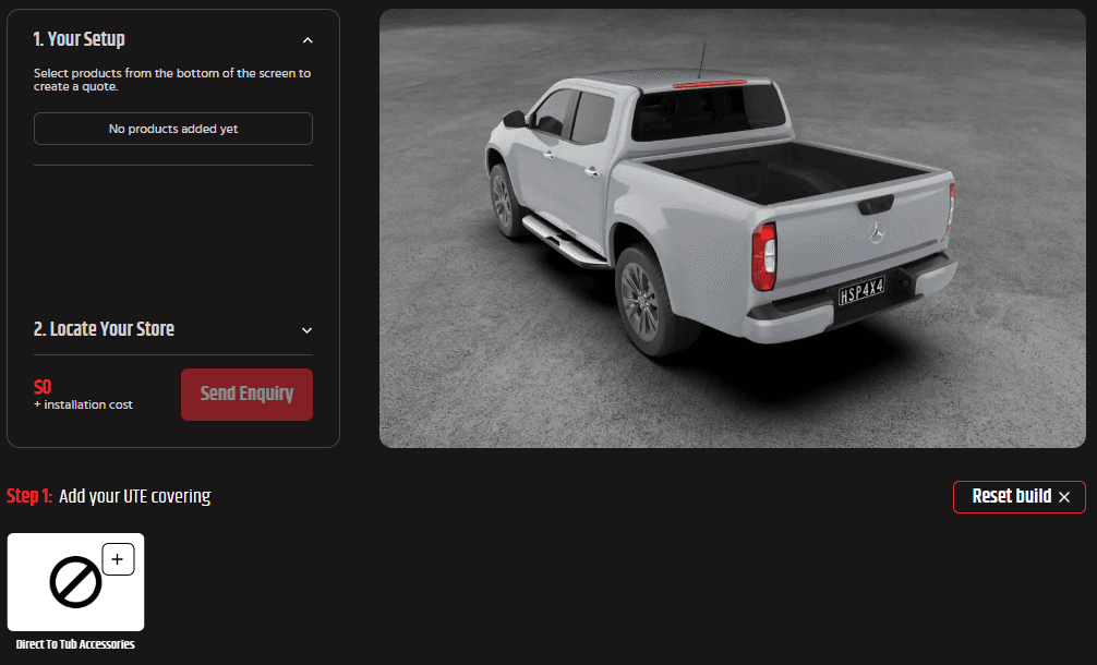 Want to see how your vehicle looks with HSP Accessories? Head to our 3D builder to design your vehicle with HSP products and your factory sports bars. Plus, you can send an enquiry to your local HSP stockist with your complete build set-up!