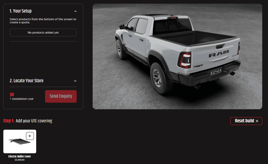 Want to see how your vehicle looks with HSP Accessories? Head to our 3D builder to design your vehicle with HSP products and your factory sports bars. Plus, you can send an enquiry to your local HSP stockist with your complete build set-up!